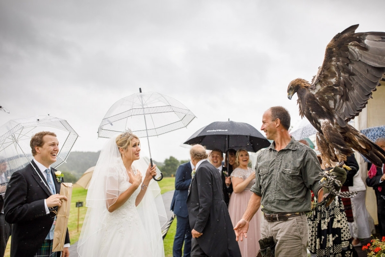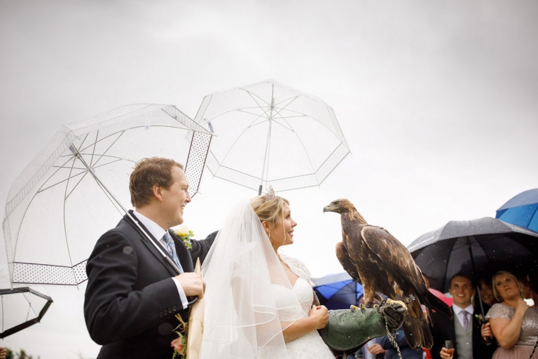 Today on the blog I bring to you Polly and Neil who got married on a very wet July day. Luckily Polly and Neil are two of the loveliest and warmest people you could ever meet so together with their lovely families they brought all the warmth that was needed! I started my day with Polly at her parents home which is just across the road from the Church they got married in and their marquee was in the field behind the house. It was so awesome having everything so close together and the hope was for all to walk between them and thankfully, although heavy rain was forecast all day, it stayed dry for all of this part of the day allowing them to do this. Having everyone follow them across to the stunningly decorated marquee (flowers by their lovely friend Sarah of Floribunda Rose ) was a lovely moment. We even managed a few photos outside before the rain started but once it started it did not let up for even a second. That did not stop a very special surprise from Polly’s Dad though, the eagle! The brief story is that Polly’s Dad, Michael, spent years filming eagles in their natural habitat and Polly always loved them but had never seen one in real life, so Michael arranged for this. The look on Polly’s face was priceless. Three fantastic speeches and some amazing food later everyone was raring to go on the dancefloor, many getting up even just for the sound check :D so we all knew it was going to be a great party! I stole Polly and Neil away just for a few minutes before I left to get one last shot out in that rain, the kind of shot that you can’t just get every day and it was well worth getting soaked for :) Here are my favourites from their day: