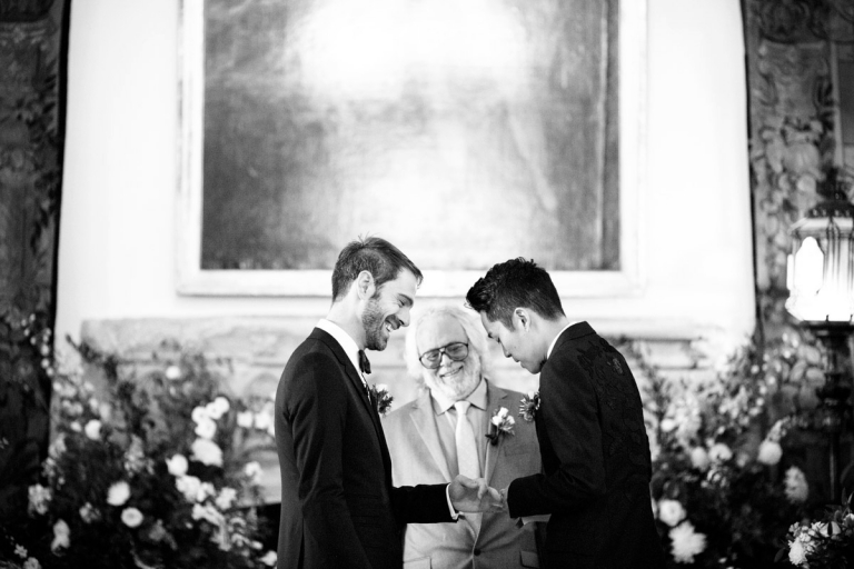 ” Where do we begin…my husband and I were over the moon with Caroline Alexander and the beautiful photos she took leading up to and on our wedding day. I had a few photographers narrowed down but once speaking with Caroline and seeing her work, I knew she was the one! I especially loved all her candid shots and featuring the wedding venues she has done in the past! We also had our pre-wedding shoot with her in the English countryside. Being expats in the UK we looked to her for suggestions on places to shoot and she recommended some lovely places. She made us feel comfortable in front of the camera and captured intimate, precious moments during our shoot! We loved how responsive she was and how she catered to our needs during the whole planning process leading up to the wedding day! I especially appreciated our final meeting prior to the wedding to make sure we got all of our bases covered. Caroline delivered on everything she promised and we could not be happier with the outcome! She is very thorough, creative, calming, and professional! None of our guests noticed Caroline on our wedding day as she was so stealthy but present to capture all the fond memories on that day! We highly recommend Caroline Alexander Photography! “ George and Brad