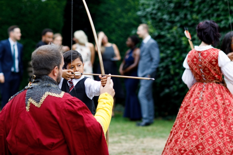If you’ve been onto my blog before you may recognise them as I previously blogged their pre wedding shoot where I took them to a couple of super Englishy places, you can see this here. I love these guys so had the BEST time with them on their wedding day. They got ready in two separate places but then mixed things up a bit and did a first look at Berkeley Castle before their guests arrived. I LOVE first looks (I did one myself) it is so super special to have this private moment, I highly recommend doing one! We then went straight into their couple photos (which is something I also did at my own wedding – it means you don’t have to cram them into the drinks reception and can spend more time with your guests!) While we were doing this they had put on some medieval themed archery for guests, how cool is that?