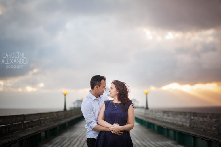 I met up with Jo and Matt, who get married later this month, in Clevedon for their pre wedding shoot. We took a chance on the forecast, which said that although rain and cloud was due all day that the evening would be bright sunshine. So I arrived in Clevedon to find dark cloud and extreme wind, oh the wind! It was so windy at one point I couldn’t stop laughing at it. Jo and Matt were amazing though and stuck it out and it totally paid off, here are some of my favourites from their shoot: