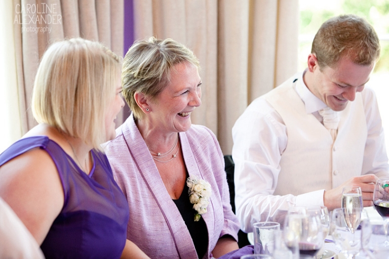 In fact, everyone I worked with at this wedding was fantastic! Phil from Napier Catering Ltd checked in with me to make sure everything was running on time for the meal (which it was, particular thanks to Claire’s brothers for being so helpful with the group photos) which is always helpful, he also gave me a choice of food AND pudding :D (win!) The room for the wedding breakfast looked great thanks to the purple and white scheme set off with Sorori Designs flowers and uplighting provided by their Dj, Neil Ollerton, proving how great suppliers really can make a massive difference to how smoothly the day runs! Anyway, everyone at this wedding, family, friends, suppliers, were all such a pleasure to be around. My two favourite moments of this wedding as the photographer though were both supplied by the bestman Mitch. The first was during the ceremony when the registrar asked him to make sure I could see clearly to photograph him giving the rings (something a registrar never says), the way he then held out the rings had everyone laughing and I myself had to suppress the giggles. The second was giving such a good speech that I got the photograph that I love of Martin’s whole family in fits of laughter at Martin’s expense :) Here are many of my favourites from the day: