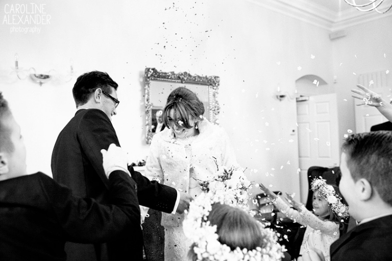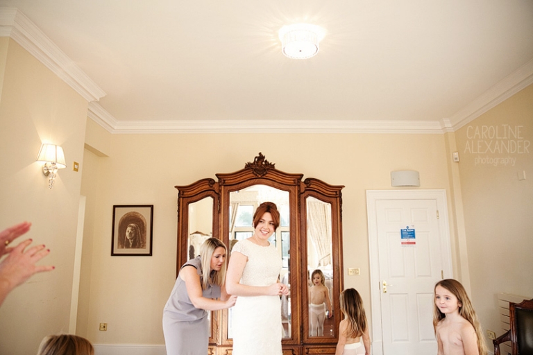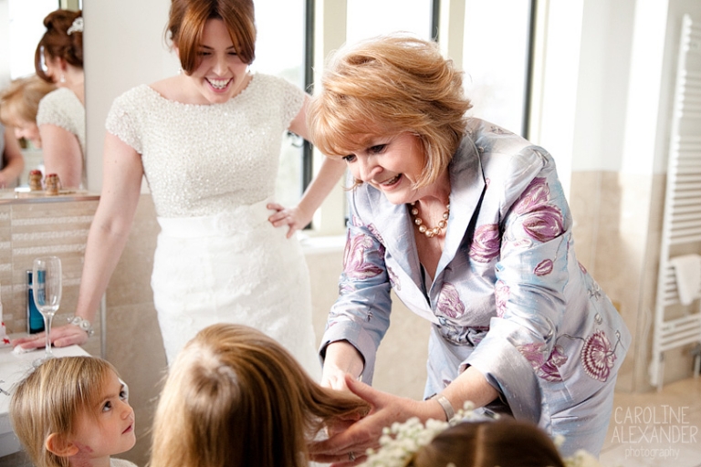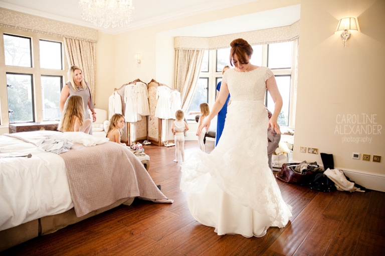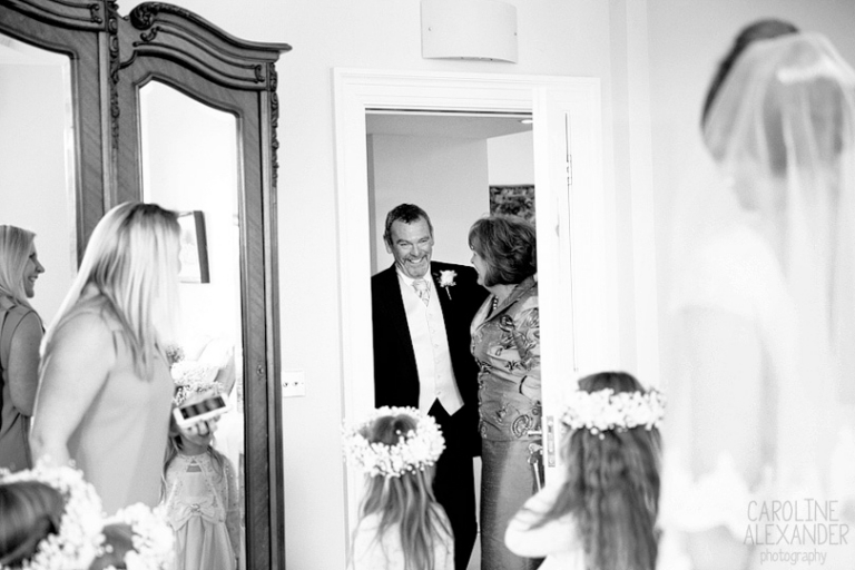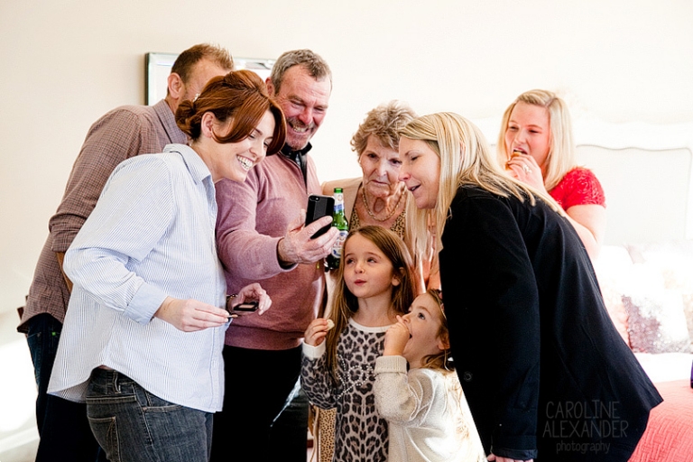 Today I bring to you the wedding of Felicity and Kevin who got married just before New Year at Old Down Manor. When I arrived Maria from Sorori Flower Designs was there with LA Wedding and Event Styling who were hard at work making the place look amazing (it could not have looked better!), and then shortly after Felicity arrived with family to get ready in the amazing bridal suite they have at Old Down Manor. It was such a lovely few hours with this lot as there was just so much love and laughter. Felicity did her own make up and her Mum did her hair so it was just friends and family around. An extra special thing happened during the morning also, unfortunately Felicity’s brother could not make it to their wedding, but only because his wife had gone into labour! So while Felicity was having her hair done they received news that there was a new baby boy in the family, shortly followed with her Dad arriving proudly with a photo of the new baby on his phone. I particularly enjoyed this part of the day as there was so much closeness to witness between all the family and Felicity’s Dad reaction to seeing her in her dress for the first time will be always be up there with my favourites!